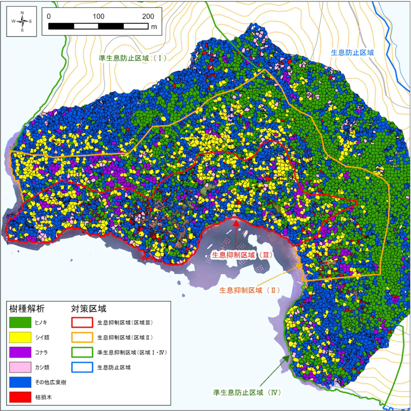 ▲DF Scannerを用いた伊崎国有林の樹種解析結果