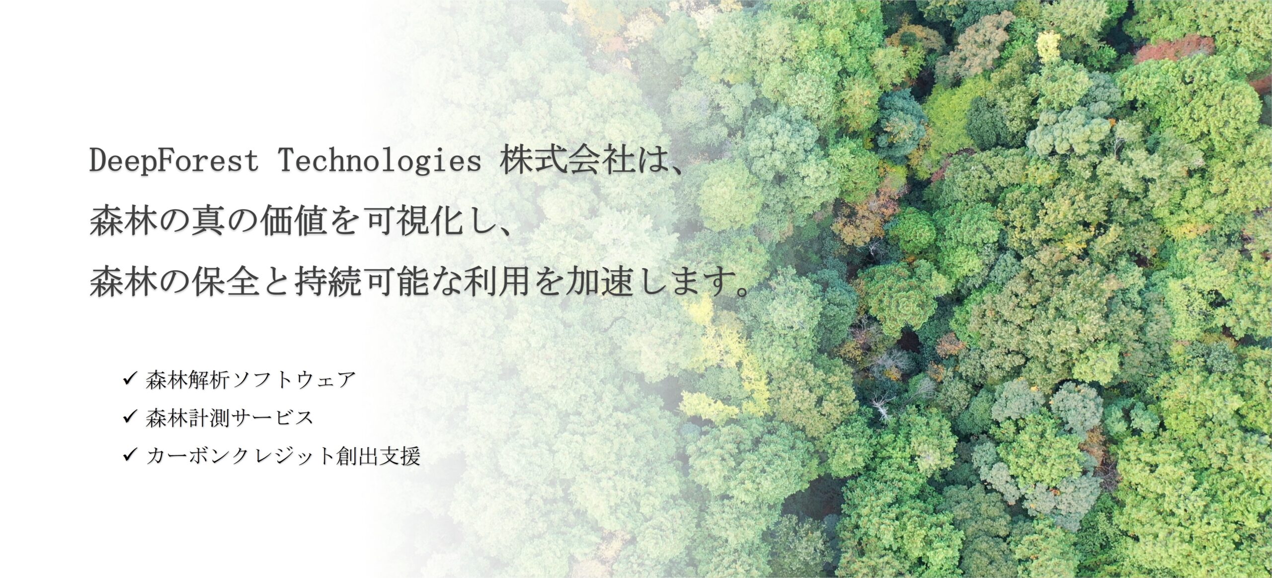 私達は誰もが森林管理にドローンを活用できる環境を提供し、林業の効率化や、炭素吸収量・生物多様性評価による森林保を目指しています。